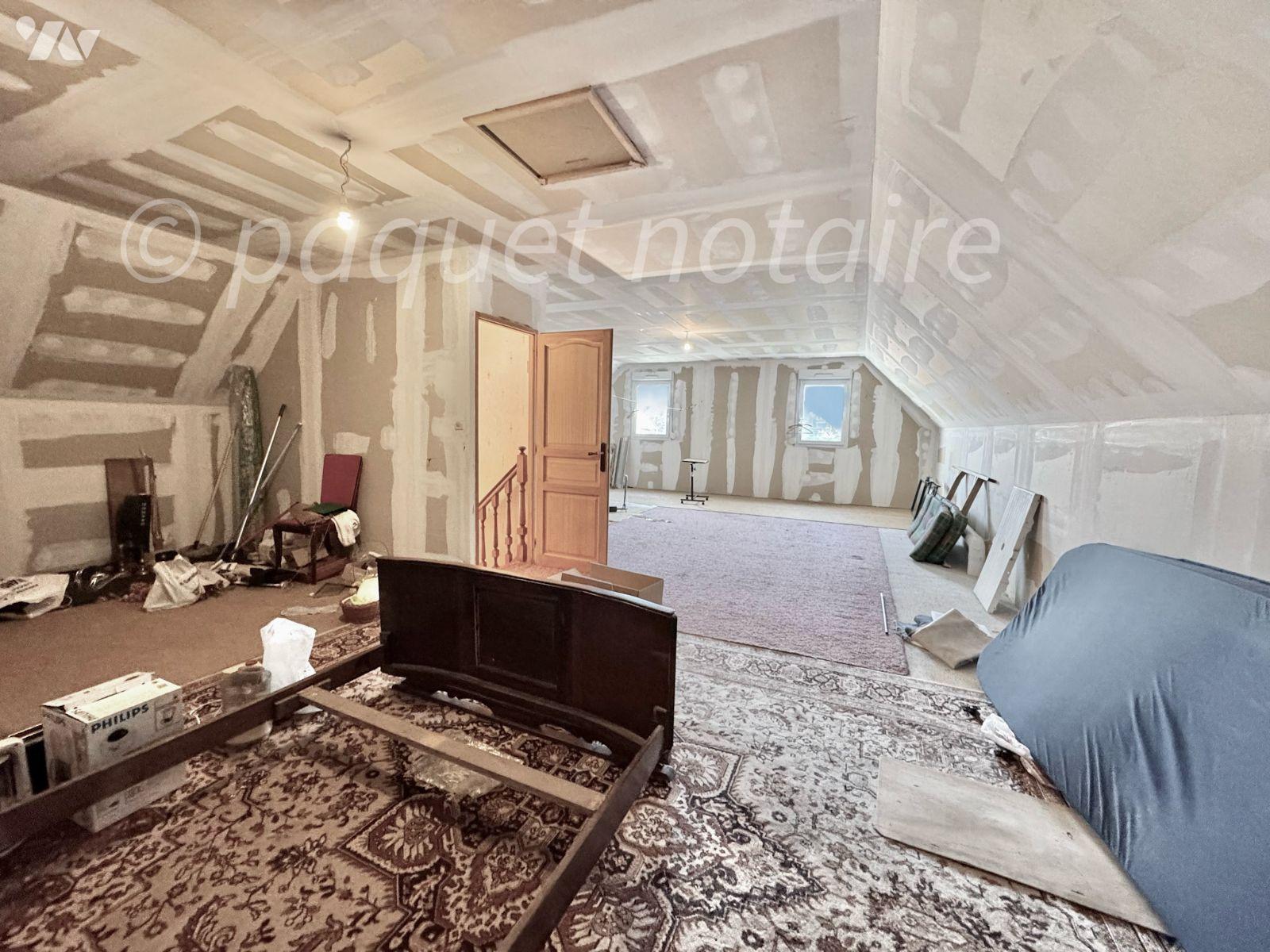 A l'étage , très grande pièce isolée de 80 m2 ou il est possible de faire 2 ou 3 chambres et une salle de bain